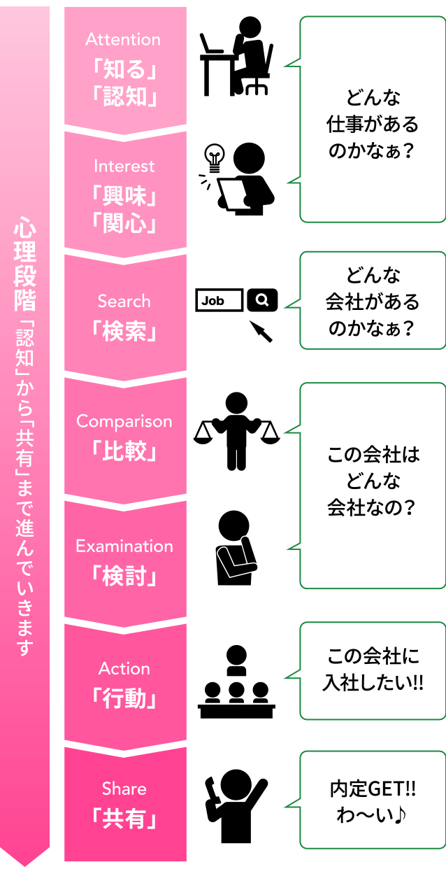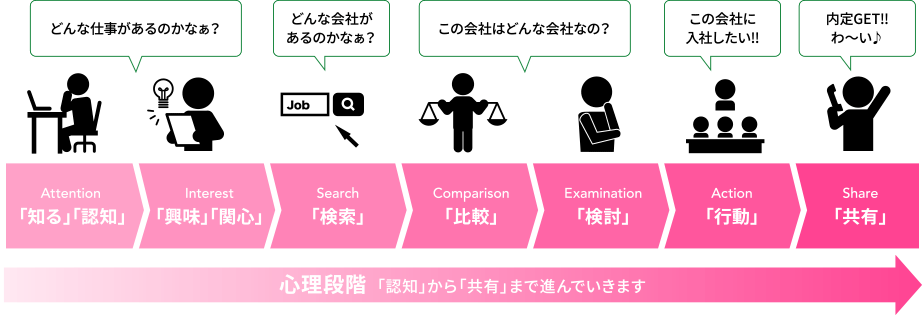 人の行動は「知る」から始まり、「興味」を持った会社を「調べ」“この会社いいかも”・・・と思ってもすぐに「行動」には進みません。